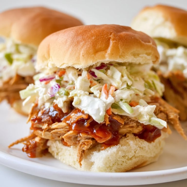 If you like heat, stir in some chili flakes or hot sauce when you're simmering the chicken, or swap in a spicy BBQ sauce for a kick that lingers. I've also made these with rotisserie chicken when I'm short on time; just shred it, toss it with warmed sauce, and you're halfway done. You can even play with the slaw by adding thinly sliced jalapeños or a handful of chopped cilantro for a fresher, brighter bite.