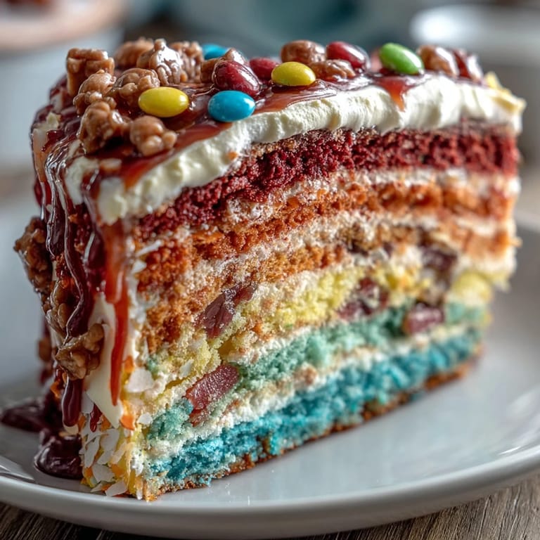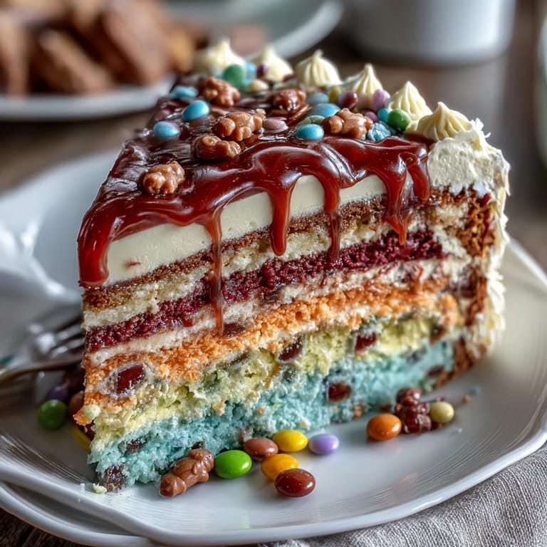 Save on Pinterest The magic moment came when my eight-year-old cousin pulled a slice onto her plate and gasped when she saw the rainbow layers and the candy tumbling out. She stopped mid-bite to show everyone at the table, and suddenly the whole room wanted a slice just to see what was inside their piece. That's when I understood that this cake isn't just about taste—it's about creating a moment of wonder.