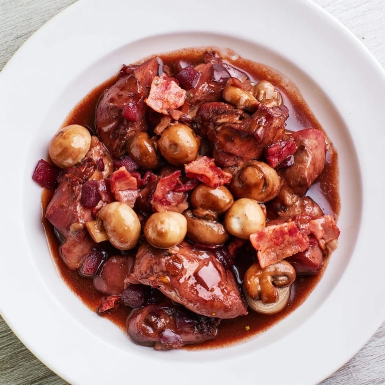 I made this for my partner after a terrible week at work, and I remember him walking into the kitchen mid-braise, stopping dead and just inhaling. He didn't say anything for a moment—just stood there breathing in. Sometimes a dish does more than fill a belly; it says, "I'm thinking of you." That's what coq au vin does.