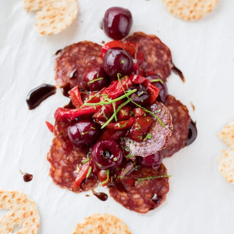 Save on Pinterest I discovered The Crimson Tide completely by accident, honestly. I was arranging ingredients on a platter for a dinner party and grabbed the chorizo, cherries, and red peppers without a clear plan—just knowing they'd all been calling to me from the fridge. As I started layering them into an S-curve, something clicked. The colors were almost too vibrant, like edible art. My guests that night couldn't stop talking about how stunning it looked before they even tasted it, and I realized I'd stumbled onto something special.