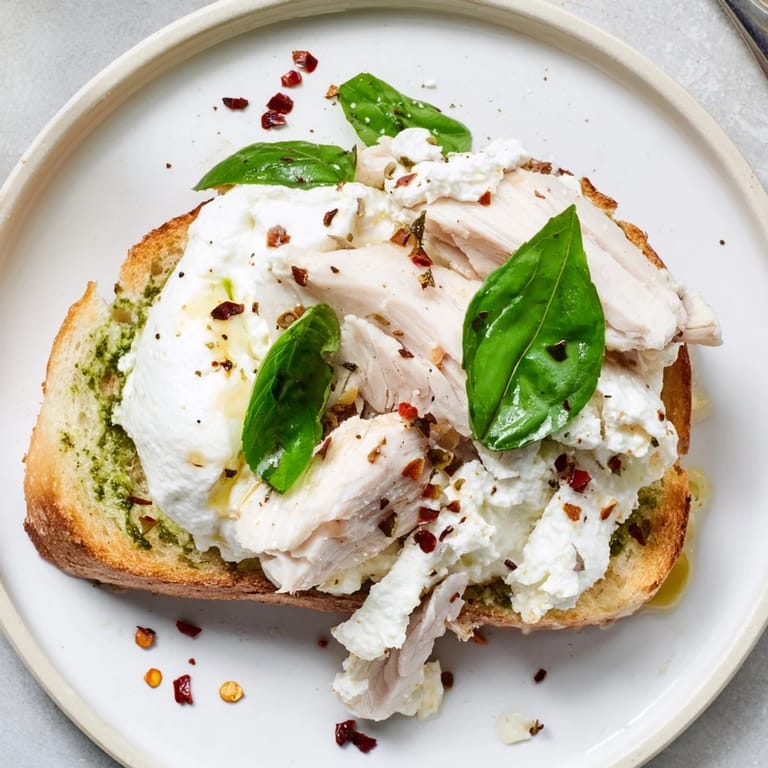 Last summer my friend Sarah came over for what was supposed to be a quick catch-up snack, and we ended up sitting at the counter for two hours picking at leftover burrata and talking about everything. The way the torn cheese spreads across the toast like a soft cloud, and how the pesto seeps into the bread's crevices, it's just the kind of food that makes conversation flow easier. She texted me the next day saying she'd made it for her husband and he'd asked when I was coming over to cook again.