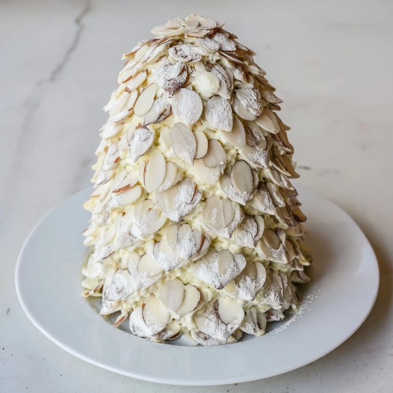 - Starting at the base, press almond slices or cracker shards into the cheese at a slight angle, overlapping them as you work upward. Each one should nestle slightly into the cheese below it. This is meditative work—take your time, let each scale catch the light. You're not just assembling; you're building a work of art.