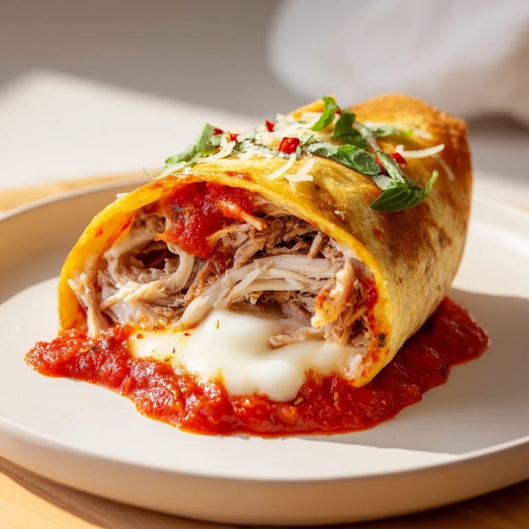 Save on Pinterest I discovered this wrap by accident one weeknight when I had leftover rotisserie chicken and marinara in the fridge, but absolutely no bread for a proper sandwich. Staring at a stack of flour tortillas, I thought: why not treat them like pizza dough? The result was crispy, golden, and somehow better than I expected—a handheld pizza that actually stayed together. Now it's my go-to when I want something that tastes indulgent but comes together in minutes.