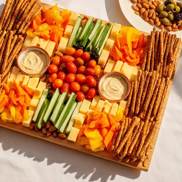 Small things tip this from nice to memorable. Keep the pretzel lines straight and even so the grid actually reads as intentional. Make sure your vegetables are bright and fresh, not the sad stuff from the back of the fridge. And honestly, the presentation matters more here than anywhere else because people are eating with their eyes first.